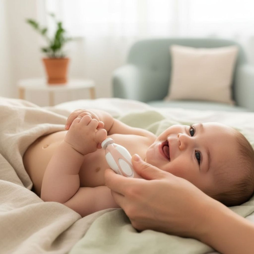 Sí 💕 Está diseñado especialmente para las manitos más pequeñas. Los cabezales son de textura ultrafina y no hay cuchillas, por lo que no hay riesgo de cortes ni presión sobre la piel del bebé.